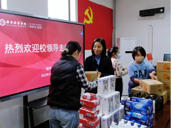 根据陕西省教育系统疫情防控暨安全稳定工作会议精神,按照学校疫情防控工作领导小组要求,为了保障封闭在校学生的日常生活与学习,学校领导、全体学工队伍自10月11日以来站在一线,以积极的心态抗击疫情,筑起校园疫情防控的安全线。他们舍小家为大家,服务学生、守护学生,充当着学生们的后勤兵,切实发挥先锋模范作用,做到守土有责、守土尽责。10月26日下午,副校长、党委副书记姚文静副教授一行看望慰问了一线驻校辅导员。