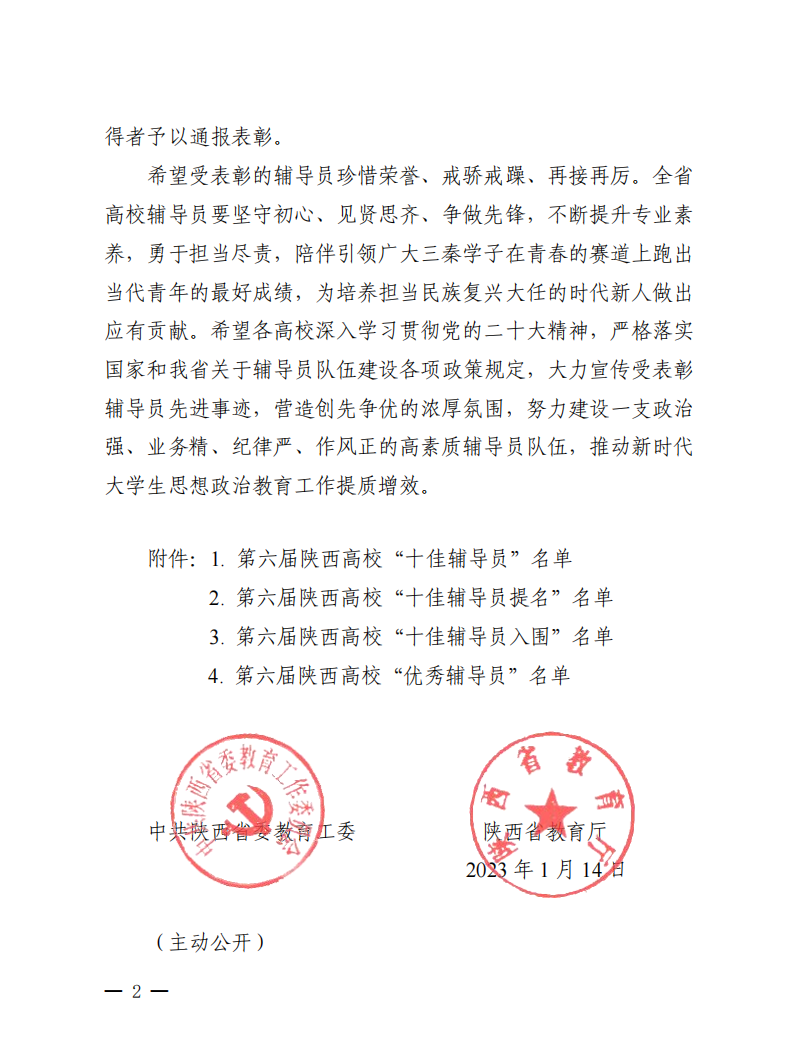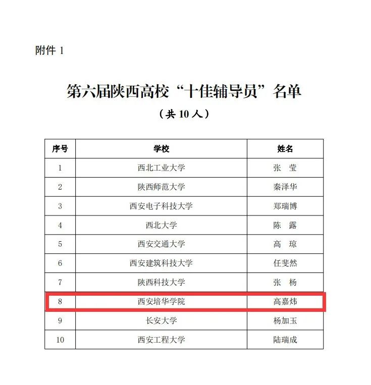 近日,“第六届陕西高校十佳辅导员和优秀辅导员推选展示”结果公布,我校推荐的三位老师全部获奖。传媒学院党委副书记、辅导员高嘉炜获得“陕西省十佳辅导员”荣誉称号,这也是陕西省民办高校首次获得该荣誉。智能科学与信息工程学院党总支副书记、辅导员王伟平,人文与国际教育学院辅导员冯豆菲获得“陕西省优秀辅导员”称号。