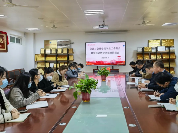 为扎实做好审核评估各项准备工作,鼓舞学校师生以饱满的热情,高昂的斗志,严谨的作风投入到评估工作中,深化审核评估学习宣传,营造“人人参与评估、评估人人知晓”的氛围,学工系统多举措、多活动,促进学校审核评估工作有序开展。建筑与艺术设计学院、会计与金融学院召开了审核评估专题学习培训会议,推进学生服务站迎评促建工作,反映阶段性工作成果及问题。医学院、智能科学与信息工程学院开展学生干部审核评估培训会暨学风建设推进会。通过对学生干部的应知应会、应知应做以及示范带动作用等展开了讲解,要求学生干部要具有“主人翁”意识,认真践行示范带头作用,做好相关主题宣传,加强学生日常生活管理,并落实好自身责任。切实发挥自身示范引领作用,加强学生学校责任感和凝聚力,以最好的状态迎接学校审核评估。