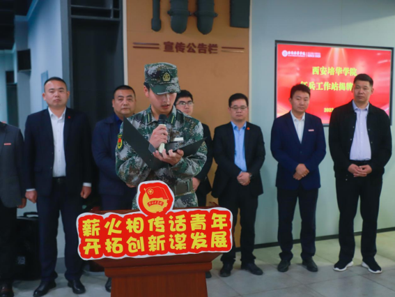 党委学工部部长蔡亮表示西安培华学院“征兵工作站”的揭牌,标志着我校征兵工作再次迈上新征程、开启新篇章。希望同学们在掌握好专业知识的同时,要勇担时代使命,把青春梦融入强军梦,为新时代国防事业挥洒激情与热血,学校也会以此为契机,进一步明确工作任务,确保把思想政治意识强、身体素质高、文化程度高的优质兵员输送到部队深造。