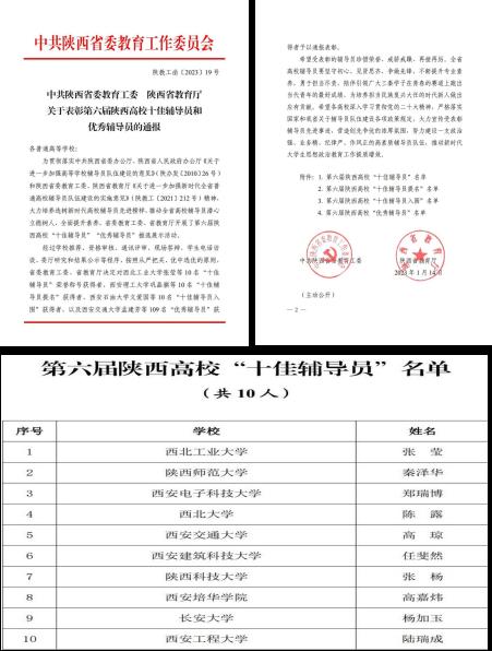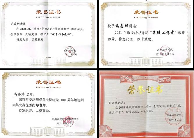 高嘉炜,男,中共党员,硕士研究生,博士在读。国家三级心理咨询师,高校创业指导师,长期从事大学生思想政治教育、心理健康教育与辅导员队伍建设研究与管理工作,曾任辅导员、学生干事、分团委书记,党委学工部干事、主管,院党委副书记,陕西高校辅导员工作委员会副主任委员等。在校工作期间,曾获第六届陕西高校“十佳辅导员”,陕西省第五届普通高校辅导员职业能力大赛一等奖,陕西高校第四届校园心理情景剧大赛一等奖等省级以上荣誉10项,“优秀辅导员”“优秀共产党员”等校级荣誉20余项,主持参与省级课题10项,校级7项,发表论文10余篇,指导学生获得省级以上奖项60余项。