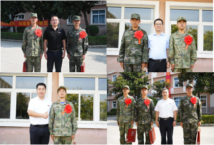 党委学工部副部长、征兵工作站站长姚斌,医学院党委书记、行政副院长王平安,传媒学院党委书记、行政副院长江俊瑞,建筑与艺术设计学院党委书记、行政副院长王飞,会计与金融学院党委副书记刘斌,人文与国际教育学院党委副书记韩斌,智能科学与信息工程学院党总支书记、行政副院长王林,为各自学院的新兵送上入伍纪念品及祝福。