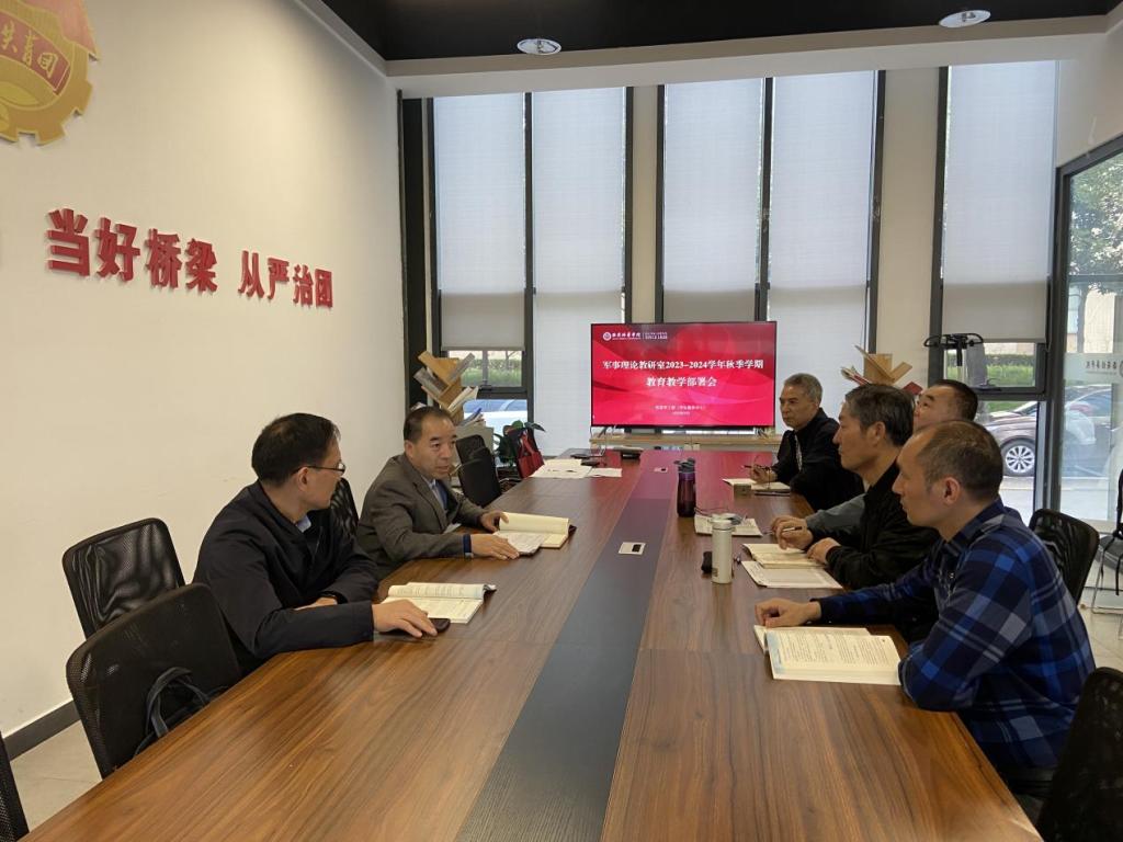 2023年9月,学生服务中心军事理论教研室召开2023-2024-1第一学期部署会议,教研室副主任王宏社主持此次会议,军事理论全体教师及教研室干事参加本次会议。