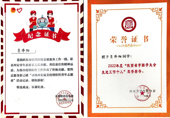 2023年5月,陕西省学联学生会先进工作个人;