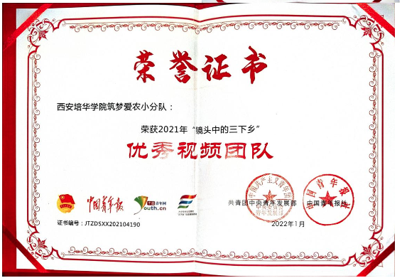 2022年4月,共青团陕西省委“喜迎二十大”主题征集活动优秀奖;
