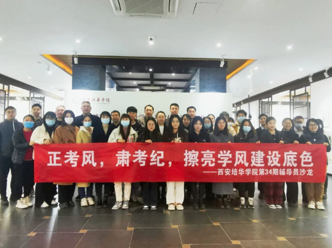 良好的学风是对教育教学水平的检验,也是激发学生学习动力,营造良好学习氛围的重要体系。其中,考风考纪是体现学校学风的重要指标之一,结合培华教发〔2023〕48 号,关于印发《西安培华学院学士学位授予工作细则(修订)》的通知,进一步强化学生考风考纪教育及管理,引导学生勤学习、善思考、定目标、齐成长,以端正的学习态度迎接考试,为学本领、长才干筑牢根基,由党委学工部主办、建筑与艺术设计学院承办的以“正考风,肃考纪,擦亮学风建设底色”为主题的第三十四期辅导员主题沙龙于2023年12月6日下午在培华艺术馆召开。