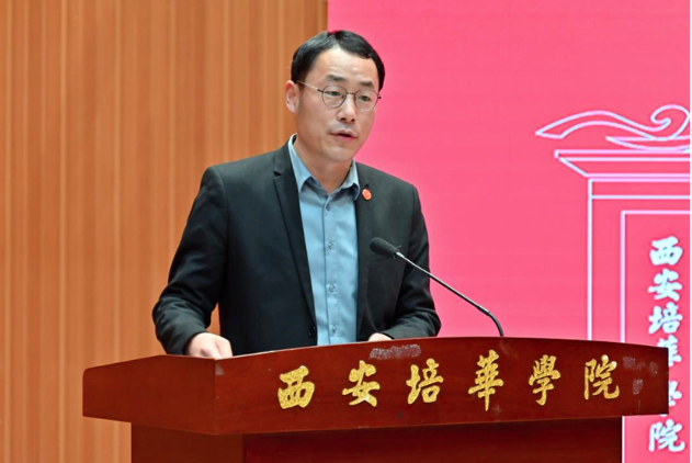 党委学工部副部长权勇太宣读《西安培华学院关于聘任2023-2024学年“一站式”学生社区导师通知》,他指出,根据关于高校“一站式”学生社区建设相关要求,推动各方育人资源下沉社区,践行一线规则,构建全员育人格局,聘任全校各院优秀老师担任社区导师,多维度育人,促进学生全面发展。