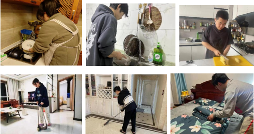 佘荣华 同学在寒假期间,帮助父母打扫家里的卫生。他说:“家庭芳动,是我们为家庭付出的一种方式,也是我们成长的一部分。家里正在修房子,作为家庭的一份子,更作为一个体育生,应该出一份力。我去帮忙拌沙浆,在冬天这个季节,做这个工作确实很累,很冷,沙也磨手,在做这个的同时,让我感到了父母的不容易,应该感恩父母,给予他们应有的尊重和支持。通过相互理解和包容,我们可以共同营造一个温馨和谐的家。”
