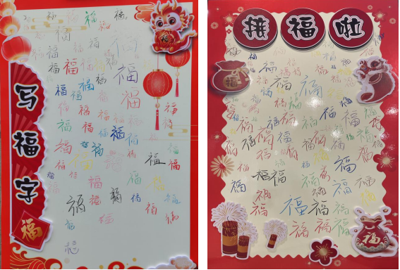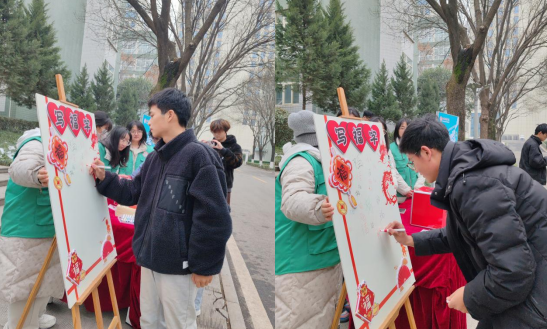 “一站式”学生社区组织新年迎新互动活动,写“福”集福气。