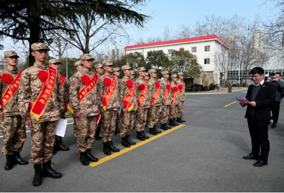 新兵入伍壮雄心,热血青春志报国。为激发广大师生拥军热情,体现我校对参军大学生的关心关怀,我校党委学工部(征兵工作站)于3月15日前往西安市民兵训练基地,慰问欢送我校2024年春季校内应征入伍16名新兵。党委学工部副部长、征兵工作站站长杨媛,传媒与设计学院党委书记、行政副院长王飞,会计与金融学院党委副书记高乐,智能科学与工程学院党委书记、行政副院长王林,医学院学生一站式服务站征兵工作干事包春萍,学生服务中心征兵工作站干事黄珂参加此次送兵仪式,热烈欢送我校新兵入伍。