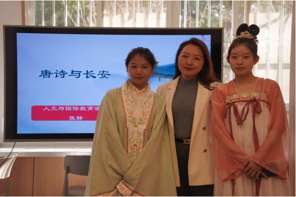 张静教授带领同学们从“走进唐诗”引出大唐盛世——长安,走入诗词盛况下的长安,在诗词中领略大唐风采。引领同学们开展唐诗中的旅行,分别是:第一站蓬莱宫,第二站兴庆宫,第三站曲江池,第四站大唐西市,通过四站古建筑与唐诗的描绘,引导同学们学习唐诗中的长安,领略诗词的魅力。