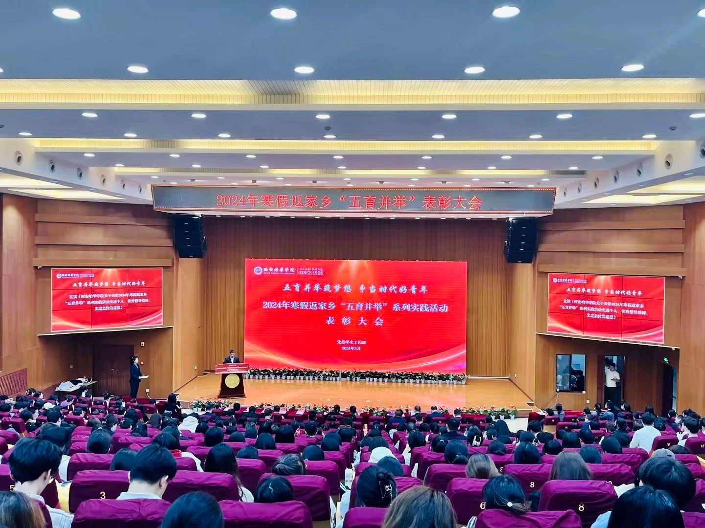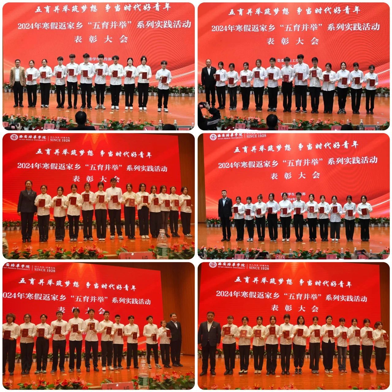 为深入贯彻学习党的二十大精神,以习近平总书记关于教育的重要论述为指导,充分发挥“五育并举”在培养学生成长成才中的重要作用。3月27日,我校在长安校区综合楼西广场、图书馆报告厅隆重举行西安培华学院2024年寒假返家乡“五育并举”系列实践活动成果展暨表彰大会。党委学工部部长权勇太,党委学工部副部长杨媛,校团委书记董莹、各二级学院党委(总支)书记、副书记,全体辅导员以及授表彰学生代表400余人出席本次大会。
