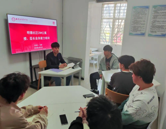 明德学生社区德育导师马亮老师在明德学生社区20号楼导师工作室开展楼层长业务能力培训会,马老师提出楼、层长在学生社区管理时要具备以下四种能力,即上传下达、沟通协调能力,团队组织管理能力,决策与问题解决能力,以及新媒体与办公软件使用能力。其中,前两种能力是强调管理,后两种能力是侧重执行。有效引导学生干部们高效率开展工作,全面提升个人能力。