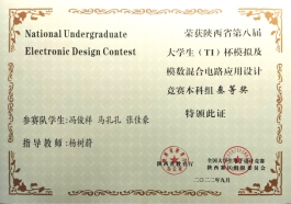 2022年8月,获得陕西省第八届(TI)杯电子设计竞赛省级“三等奖”