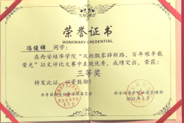 2022年5月,获得征文比赛校级“三等奖”、海报制作比赛校级“优秀奖”