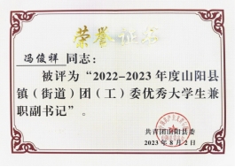 2023年8月,获得2022-2023年度山阳县“优秀大学生兼职副书记”