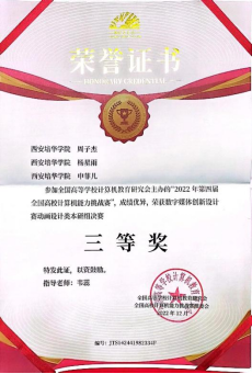 23.2022年5月,获中国大学生计算机设计大赛西北地区赛三等奖