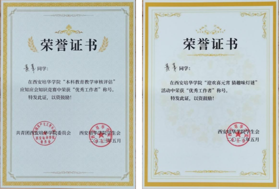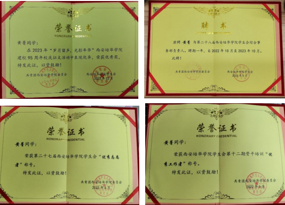 4.2023年6月获得西安培华学院“三好学生”荣誉称号;