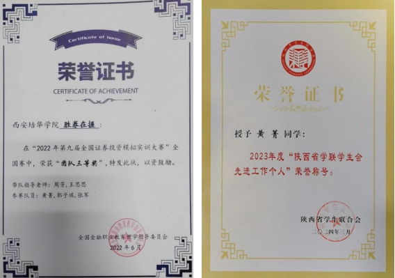 10.2022年5月获得西安培华学院第五届团干部素质能力大赛校三等奖;