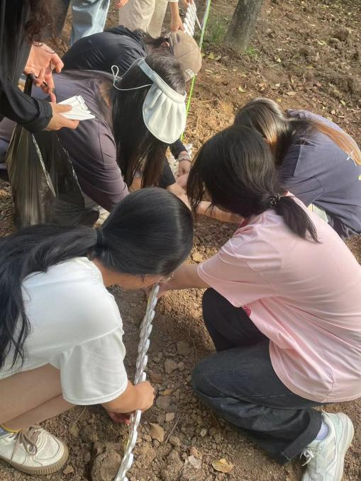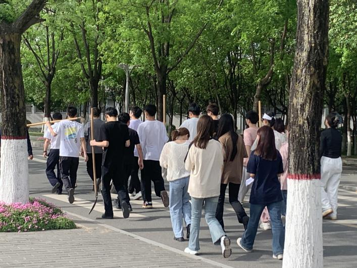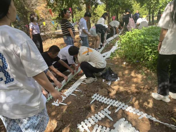 栽篱笆 为充分发挥劳动育人功能,让学生真切感受到劳动之美、躬耕之乐,学院领导、老师和学生们一起为劳动基地栽篱笆。同学们五人一组分工合作,学习搭建篱笆技能,也提升了同学们的动手能力。经过两个小时,劳动实践基地就筑起了漂亮的“篱笆墙”。同学们表示,实践基地面貌焕然一新,自己也成就感满满。