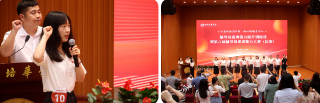 其中,设置基础知识测试、学情熟知、案例研讨及谈心谈话四个环节,突出以赛带练、以赛代训,强化以赛促学、以赛促建,全面展现参赛选手理论素养、专业知识以及针对大学生特点实施教育引导、应急处突、解决实际问题的能力,进一步提升全校辅导员职业能力和专业水平,引导我校辅导员共同探讨如何答好辅导员“为党育人,为国育才”的新时代答卷。经过前三轮的比拼,12名辅导员进入决赛。