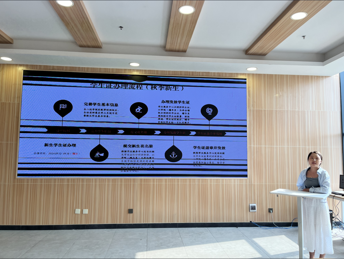 培训会上党委学工部邀请了10余位学工队伍中经验丰富的领导老师围绕新生报到、迎新期间的注意事项、防网络诈骗工作、军训期间的辅导员工作动态、“一站式”社区建设、资助工作、学生证的办理、“姜维之”班的创建等多个主题开展了讲解及工作经验分享。