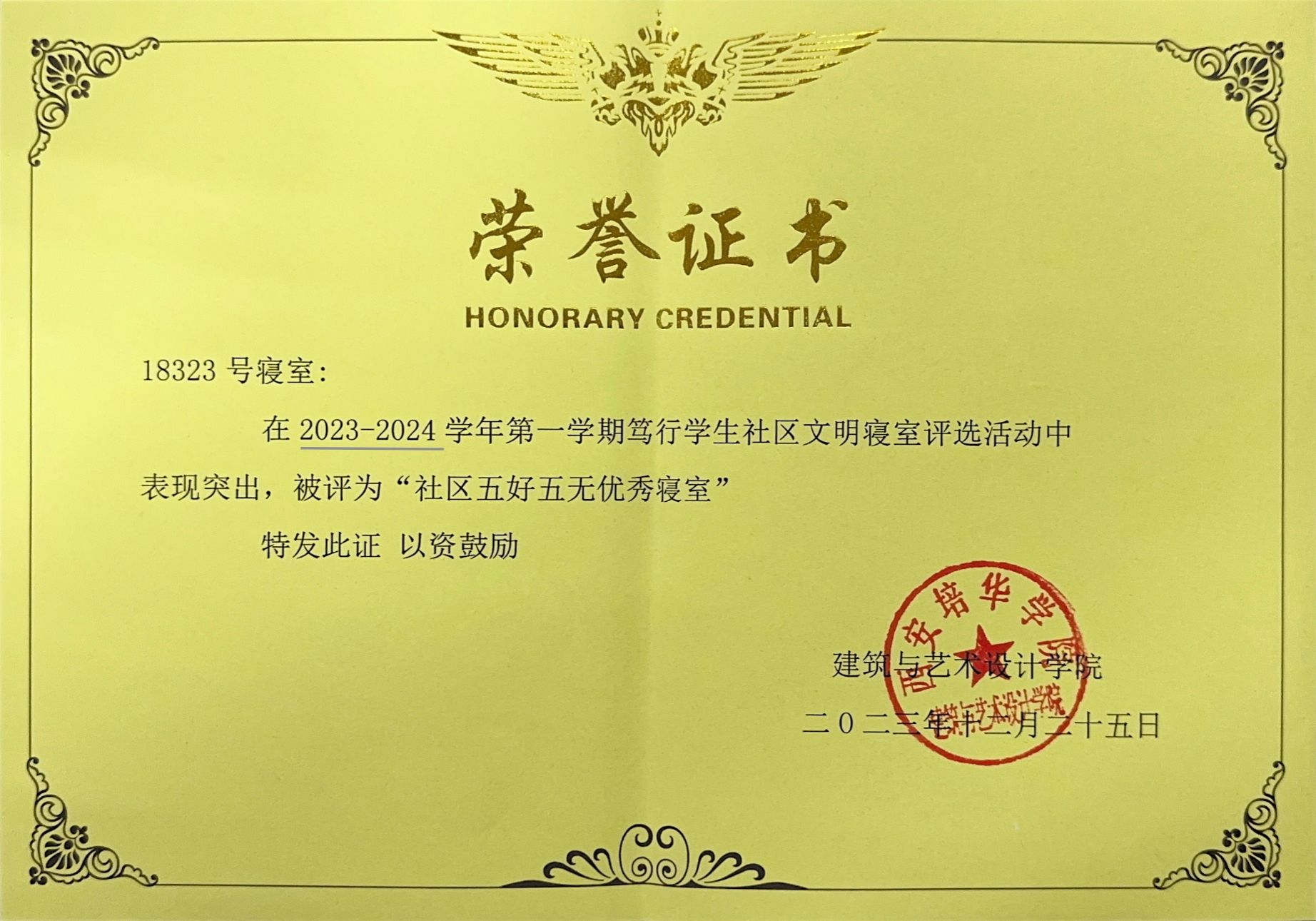 4.2023年12月获得西安培华学院二等奖学金;