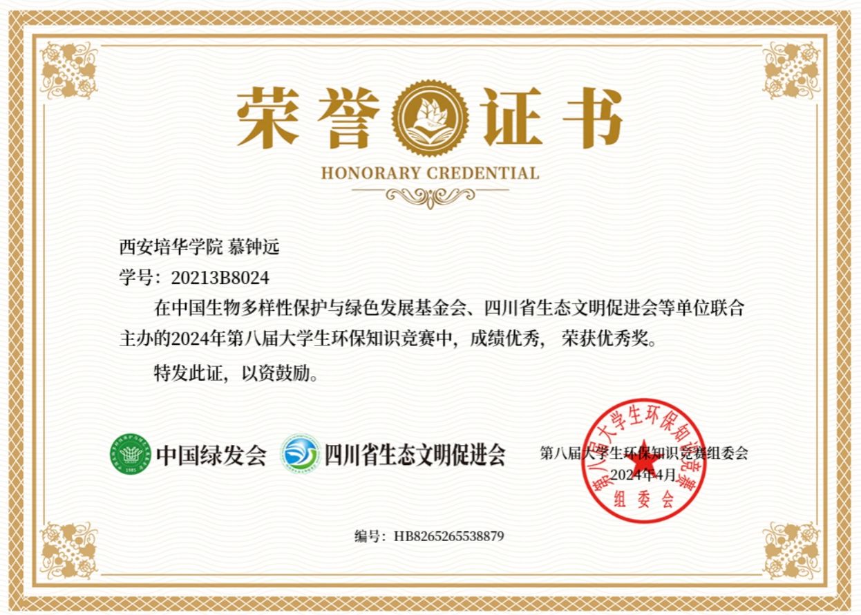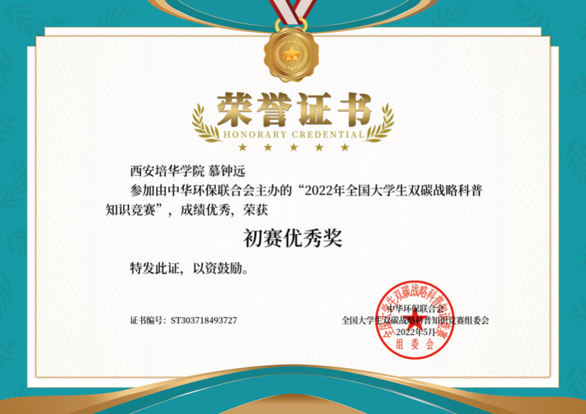 15.2022年4月获得第六届大学生环保知识竞赛优秀奖。