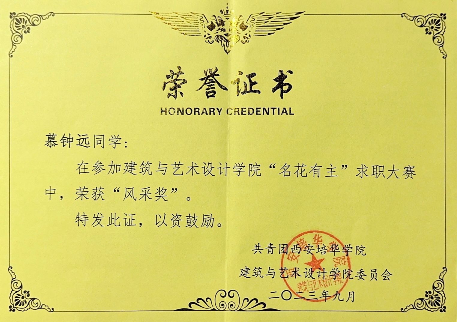 9.2023年3月获得西安培华学院学业进步奖