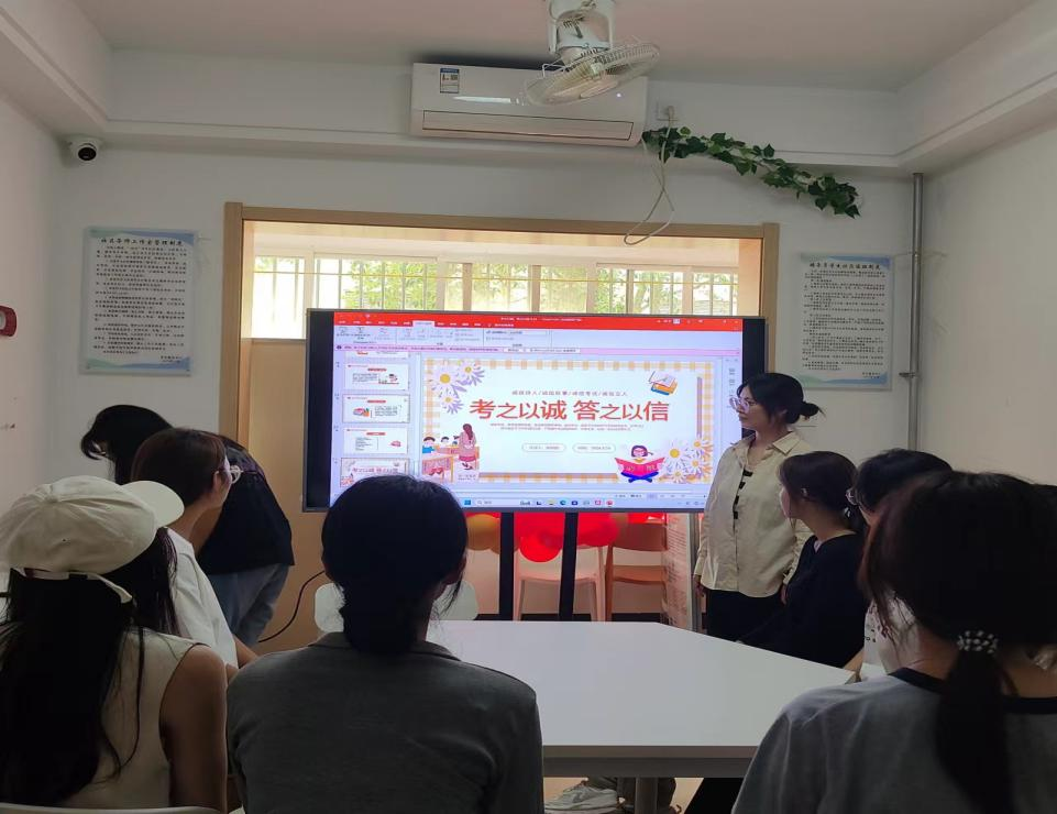 博雅学生社区德育导师张娟娟老师在1号楼社区导师工作室开展了“考之以诚、答之以信”宣传教育活动,,带领社区同学们共同学习《学生手册》中考试违纪作弊处分认定与处理办法,告诫同学们不能存侥幸心理,要遵守考纪,抵制作弊行为,维护我院的优良学风传统,认真复习,积极备考,用实力来证明自己。强调深化大学生的诚信意识,督促同学们严格遵守考场纪律,认真对待考试,以真实的成绩证明自己,培养诚实守信、遵纪守法的品德和作风。