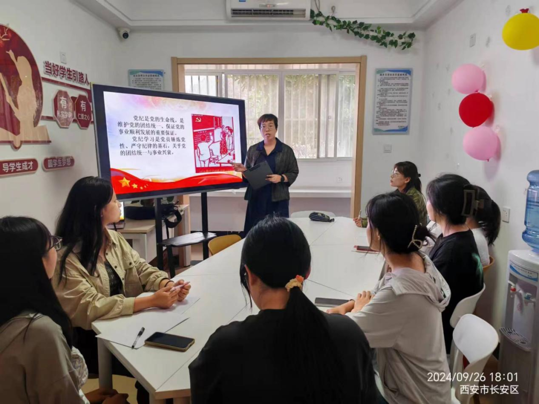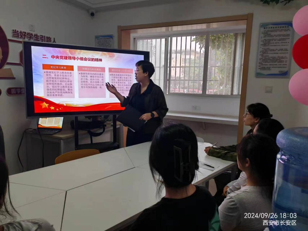 至善学生社区德育导师兰佩洁老师在7号楼导师工作室开展了“2024年学生党支部党纪学习教育”主题活动。本次2024年学生党支部党纪学习教育主题活动圆满结束。活动主要围绕党纪党规学习教育的重要性与意义,对“三会一课”及主题党日活动进行了详细讲解。通过党纪知识的深入学习与分享,全体党员对党的纪律规定和党员行为规范有了更加清晰的认识和理解。