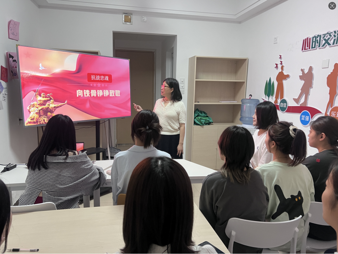 笃行学生社区德育导师魏浩亮老师在21号楼社区导师工作室开展“爱国主义教育”主题育人活动,魏老师面向学生社区的同学们大力弘扬伟大抗战精神,学习爱国主义精神,沿着英烈们开辟的道路,向着中华民族伟大复兴的光辉彼岸奋勇前进。这是对为夺取中国人民抗日战争胜利献出生命的所有先烈、对为中华民族独立和中国人民解放献出生命的所有英灵的最好告慰。