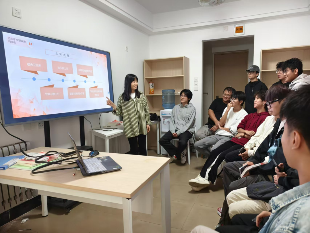 至善学生社区德育导师张丹老师在15号楼导师工作室开展了“社区学生骨干五无五好宿舍创建分享会”。本次活动的核心目标是让学生社区的学生骨干全面认识“五无五好宿舍”的概念、目的、标准和创建流程。通过此次分享会,期望能够激发学生的自我管理意识,自觉遵守文明习惯,例如维护环境清洁和遵守社区秩序。同时,我们也将组织各类文化活动和志愿服务,以加强社区内部的凝聚力。