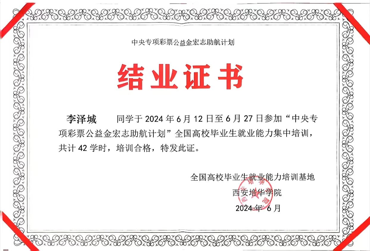 2.2024年5月获西安培华学院团干部素质能力大赛优秀奖;