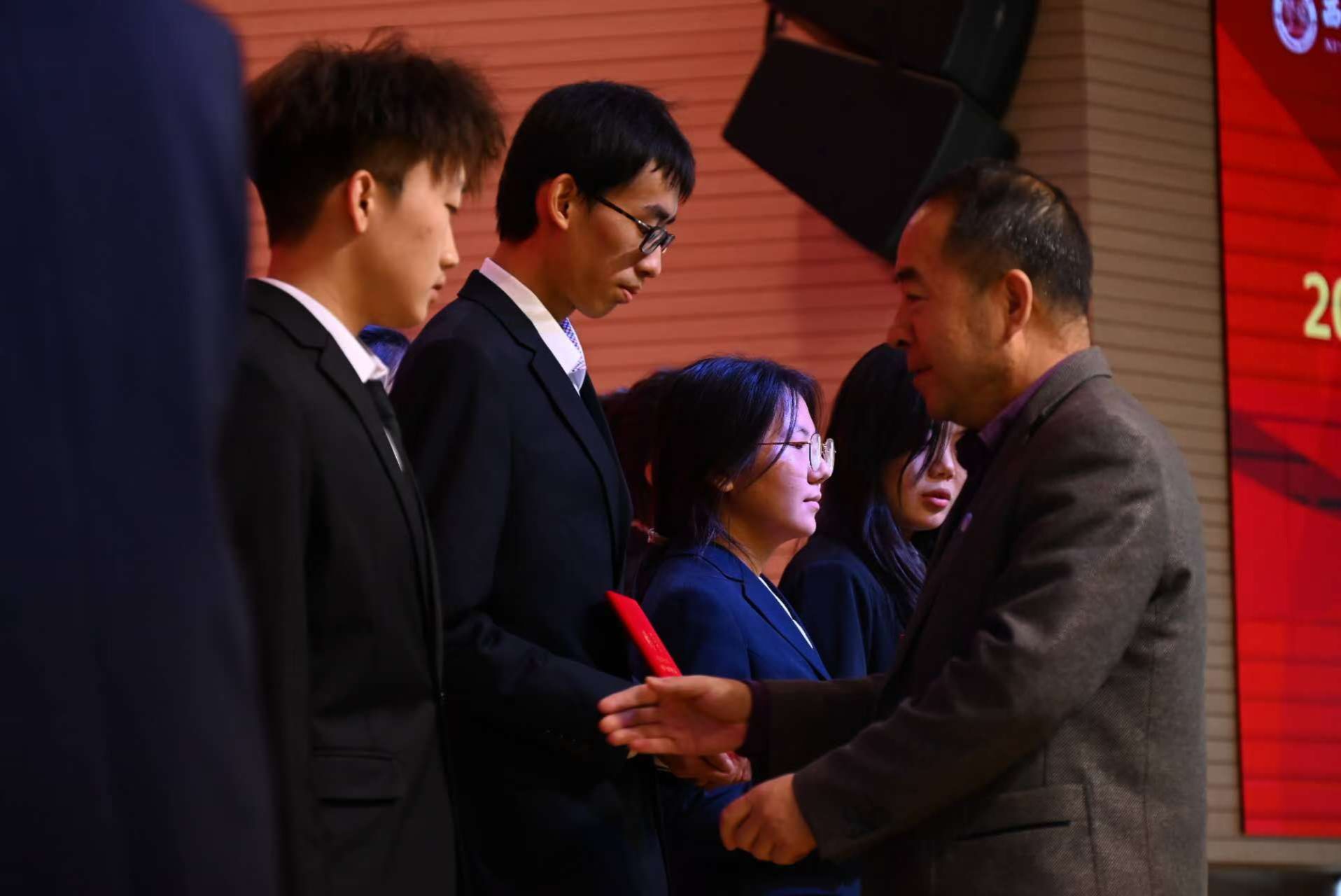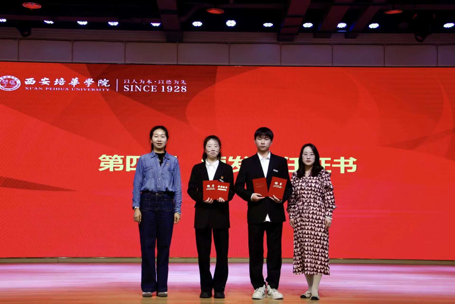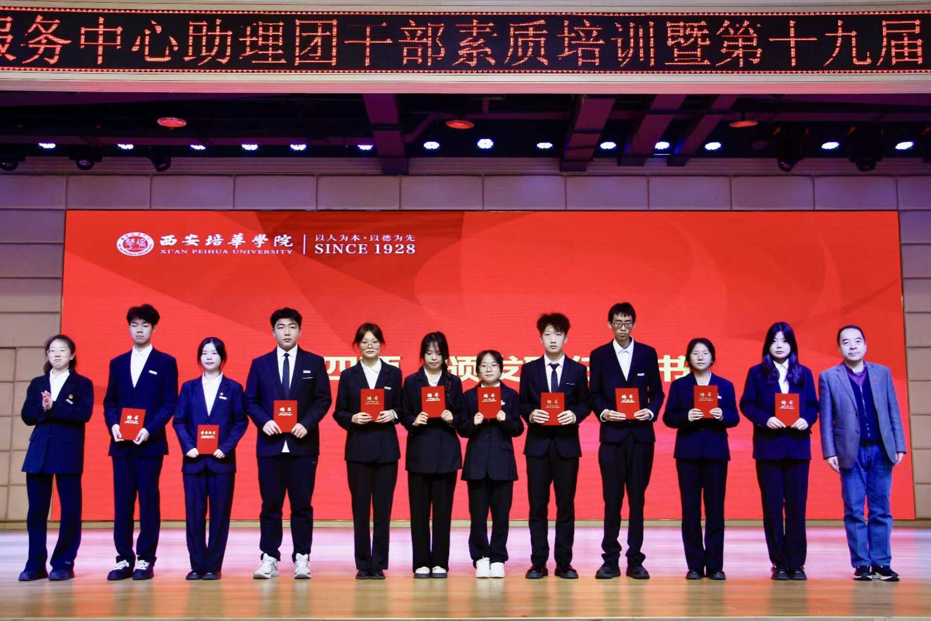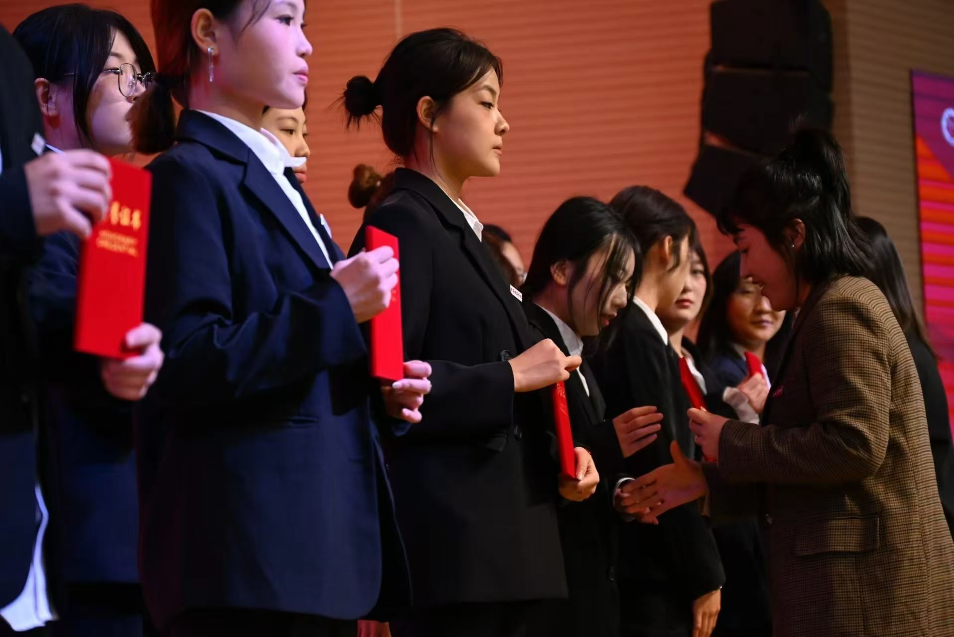 (校团委书记董莹老师、学生服务中心邱含雪老师为主席团成员颁发优秀学生干部荣誉证书及聘书)