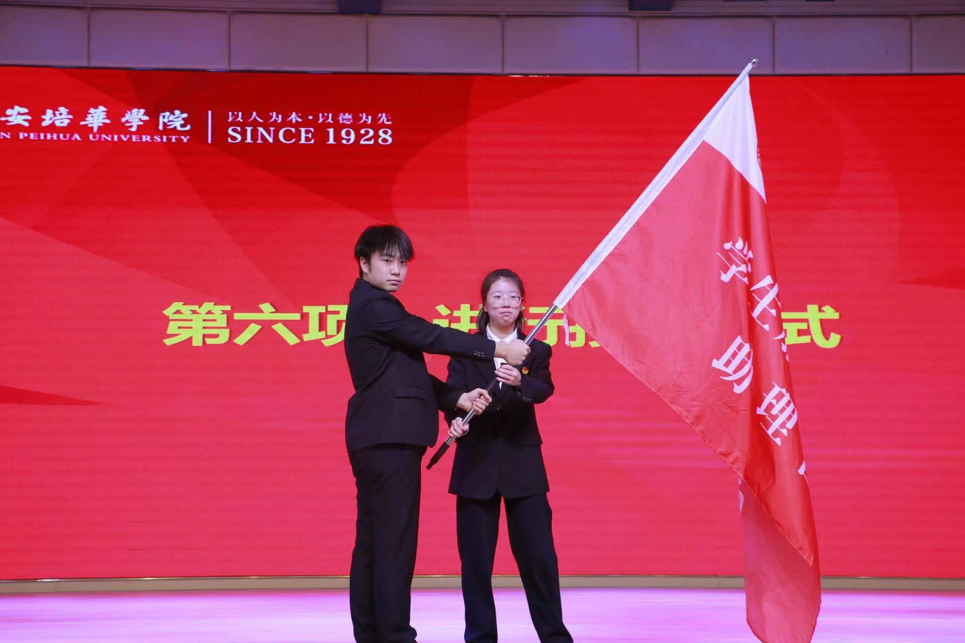 (执行主席赵王驰与主席团成员石佳茹进行会旗交接)