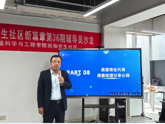 随后,鼎晟物业代表庞磊经理也分享了物业管理在学生社区中的实践经验与深刻思考,通过温馨提示、宿舍走访、定期执勤等方式,守护着学生生活的方方面面,他再次强调了多方协同合作、共同育人的重要意义,希望和学业老师、辅导员等互相支持,共同做好社区育人工作。