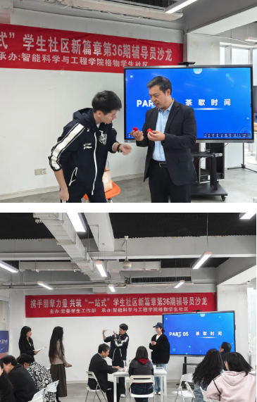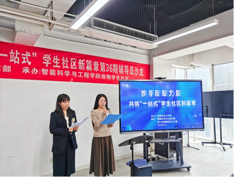 为深入落实立德树人根本任务,全面推进“一站式”学生社区综合管理模式建设,进一步发挥朋辈力量在学生社区中的育人成效,扎实做好社区育人工作,10 月 31 日,一场聚焦于“携手朋辈力量,共筑‘一站式’学生社区新篇章” 的辅导员主题沙龙活动在创客中心举办。出席此次沙龙活动的包括:党委学生工作部副部长杨媛,各学院党委书记(副书记)、学业导师代表智能科学与工程学院杨坤老师、鼎晟物业代表庞磊经理、一站式学生社区管理老师代表、辅导员代表以及学生代表,本次活动由智能科学与工程学院辅导员仵怡欣和石戎睿星老师主持。