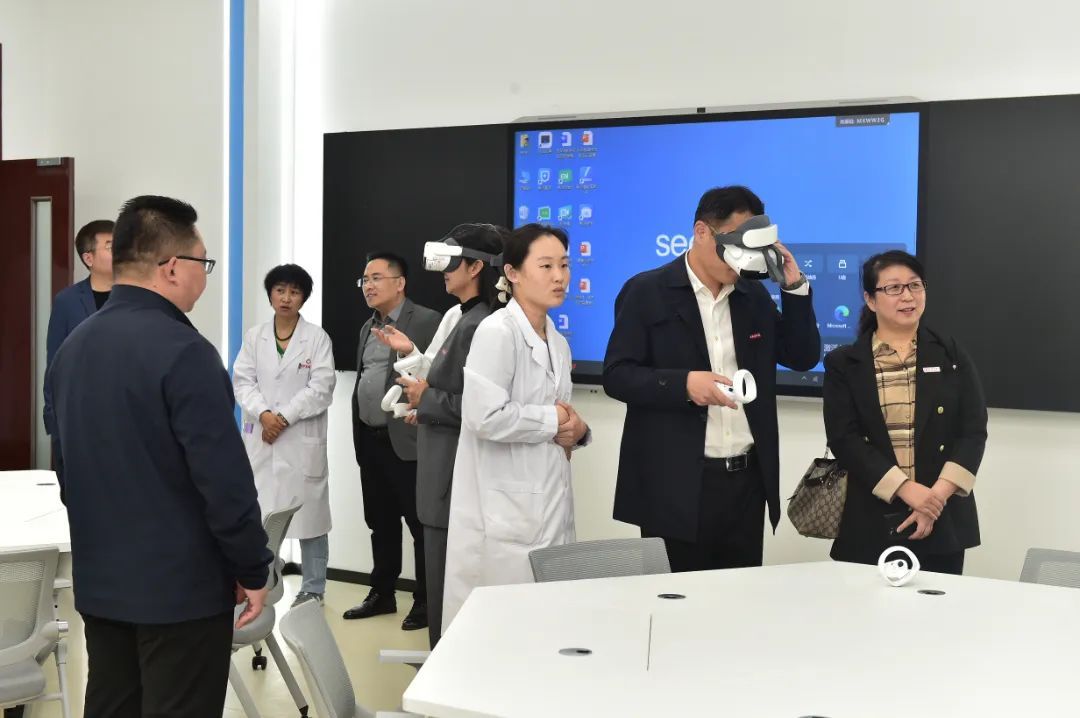 在参观交流中,我校重点了解了山东协和学院在实验教学中心、数字化教学设备、学生创业就业等方面的建设情况,随后我校与山东协和学院进行深入的座谈交流与学习。