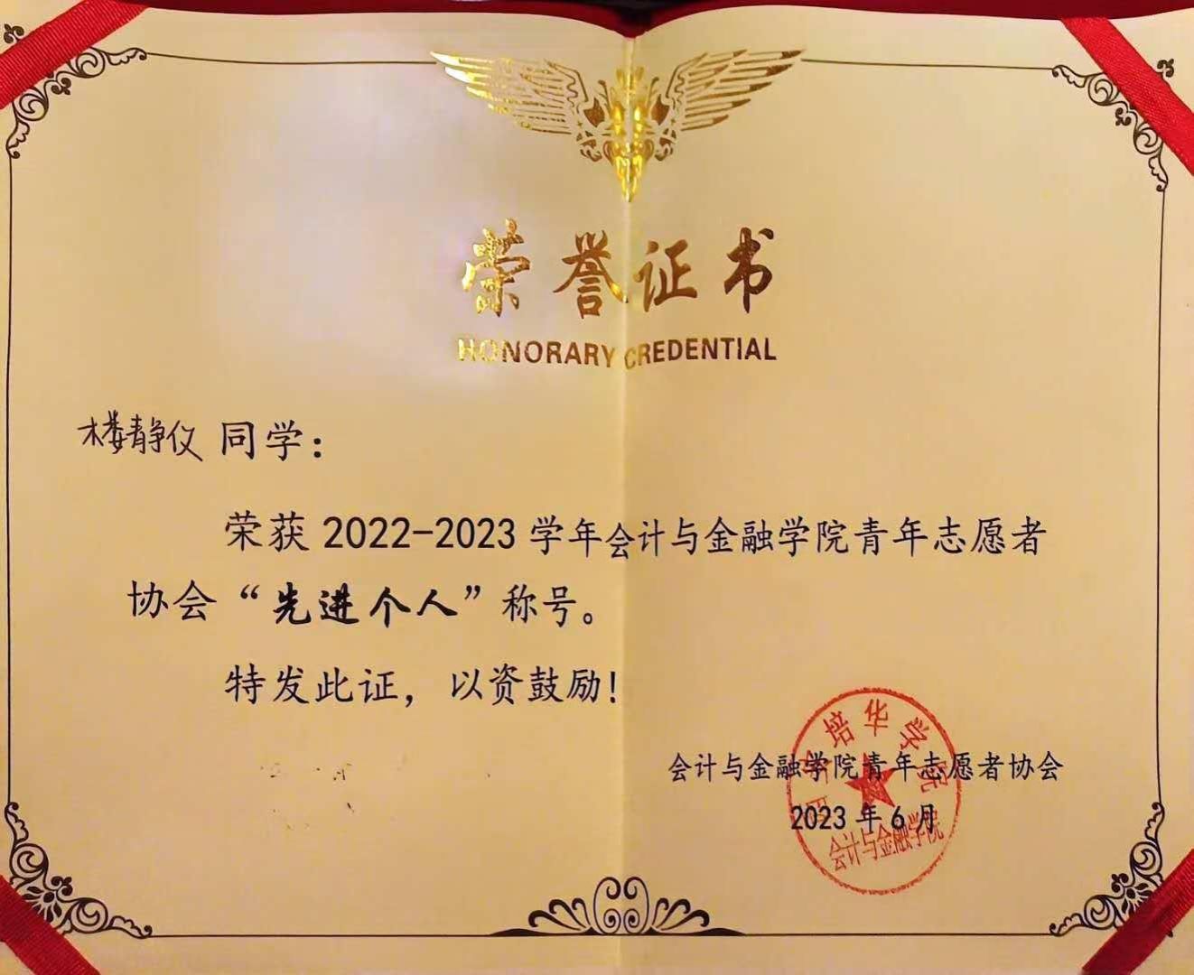 青年如春,如朝日,如百卉之萌动。在校园里,她积极参加职业生涯体验,辩论赛等活动,同时作为志愿者贡献了自己的力量,并踊跃参与寒假社会实践“五育并举”系列活动,也获得了先进个人荣誉称号。在追光前行的路上,她时刻怀着蓬勃的朝气和充满生命力的精神面貌,焕发属于自己的青春光彩。