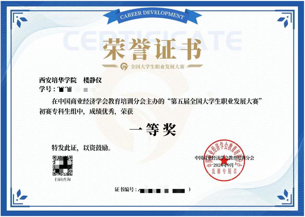 在2022-2023学年,她开始搜罗能以专科生身份参加并与自身专业相关的考试信息,并对自己的大学生活进行了一个合理的时间规划,利用每天的课余时间进行备考,一步一脚印,一张张准考证上记录着她进步的足迹,提前做好的规划和持之以恒的行动让她一次性先后取得了普通话证书,会计专业技术资格(初级)证书,统计专业技术资格(初级)证书,英语四级证书,全国计算机等级考试二级合格证书以及AMAC基金从业人员资格考试成绩合格证明;在2023-2024学年,她的专业成绩位居年级第二,均分90.14分。未来路还很长,但问耕耘。