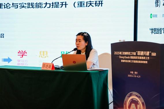 为深化新时代高校思想政治工作的创新实践,推动人工智能技术与党建思政的深度融合,促进辅导员工作室建设,4月18日至21日,我校“智”心无涯工作室主持人高珊珊、雏鹰工作室主持人郝甜甜、数翼工作室主持人黄鑫、筑梦网络思政辅导员工作室主持人朱林鹏赴重庆参加华培育人(北京)教育科学技术院主办的“DeepSeek赋能党建思政工作暨辅导员名师工作室建设高级研修班”。本次研修班汇聚全国90余所高校的两百余名思政工作者,通过“理论+实践”“案例+技术”的多元模式,为辅导员队伍注入数智化转型的新动能。