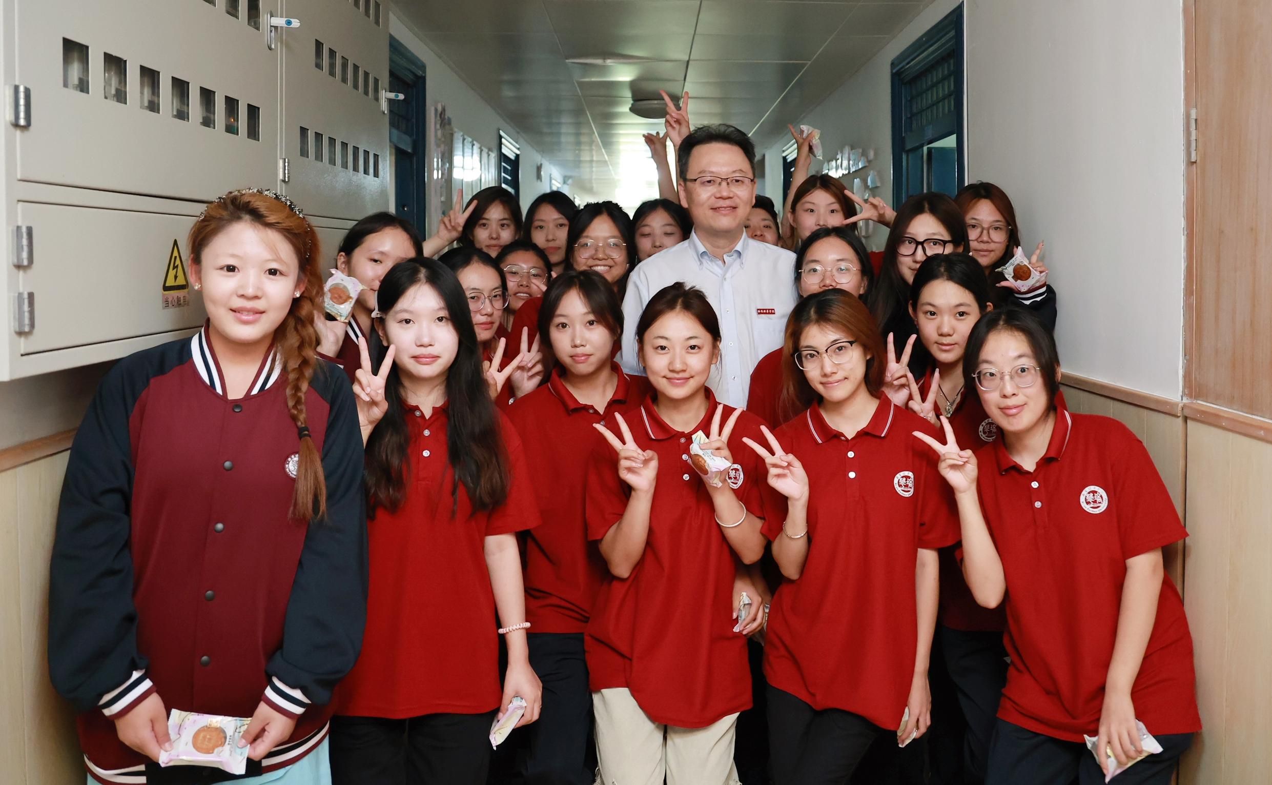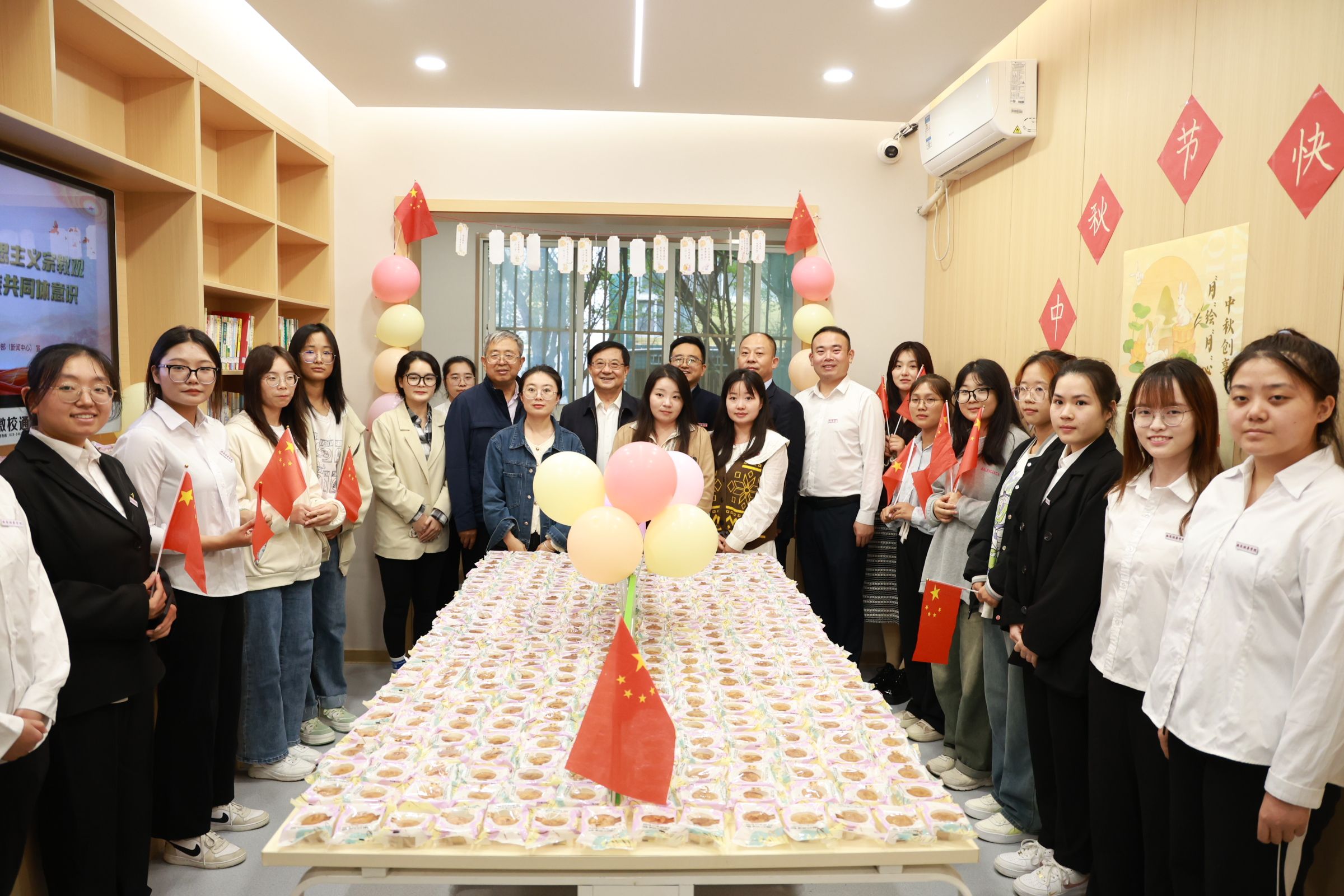 (校领导为同学们发放月饼欢度中秋)