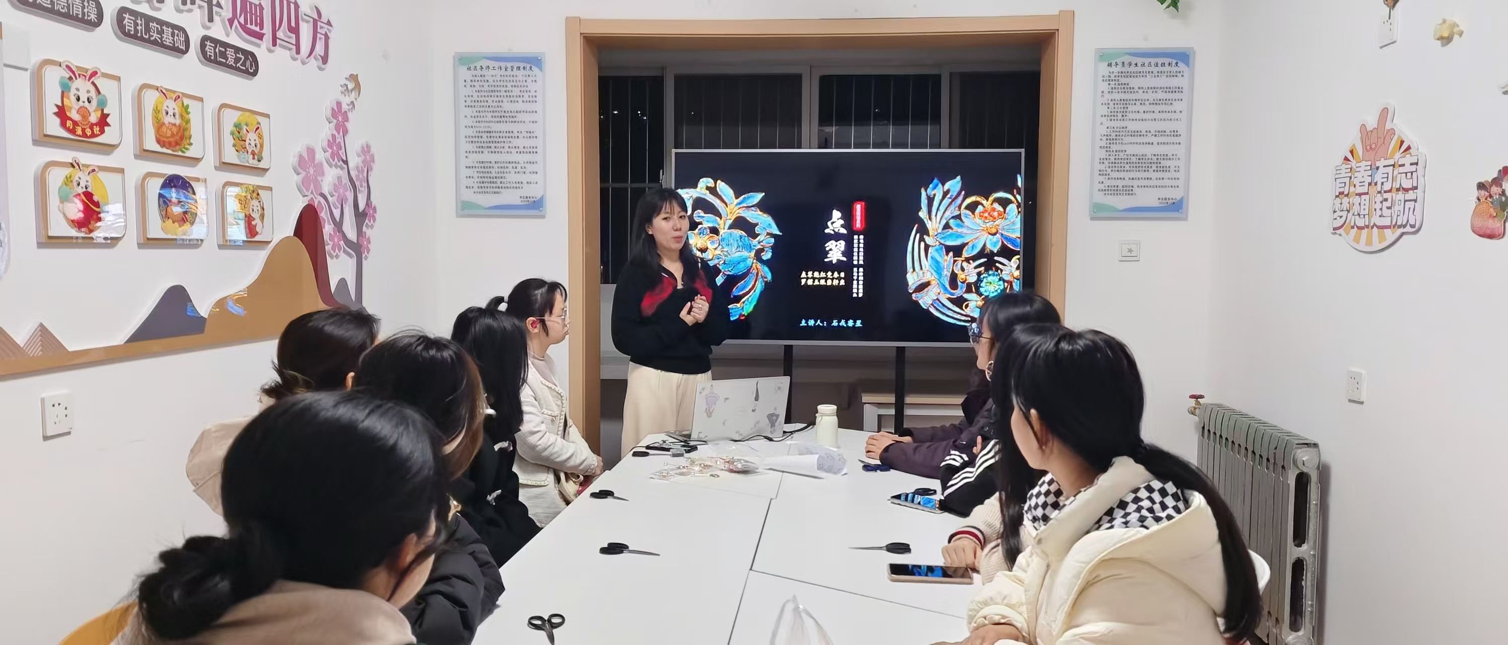非物质文化遗产承载着民族的历史记忆与文化精神,文化传承,青年当有为。从点翠的雍容到螺钿的绚烂,从拓染的质朴到花灯的喜庆,每一项技艺都是先辈智慧的结晶。青年大学生应加强中华传统文化的学习,增强文化自信与文化认同,争做传统文化的传承者与创新者。未来,学生社区将持续搭建传统文化传播平台,推动传统文化在校园落地生根。