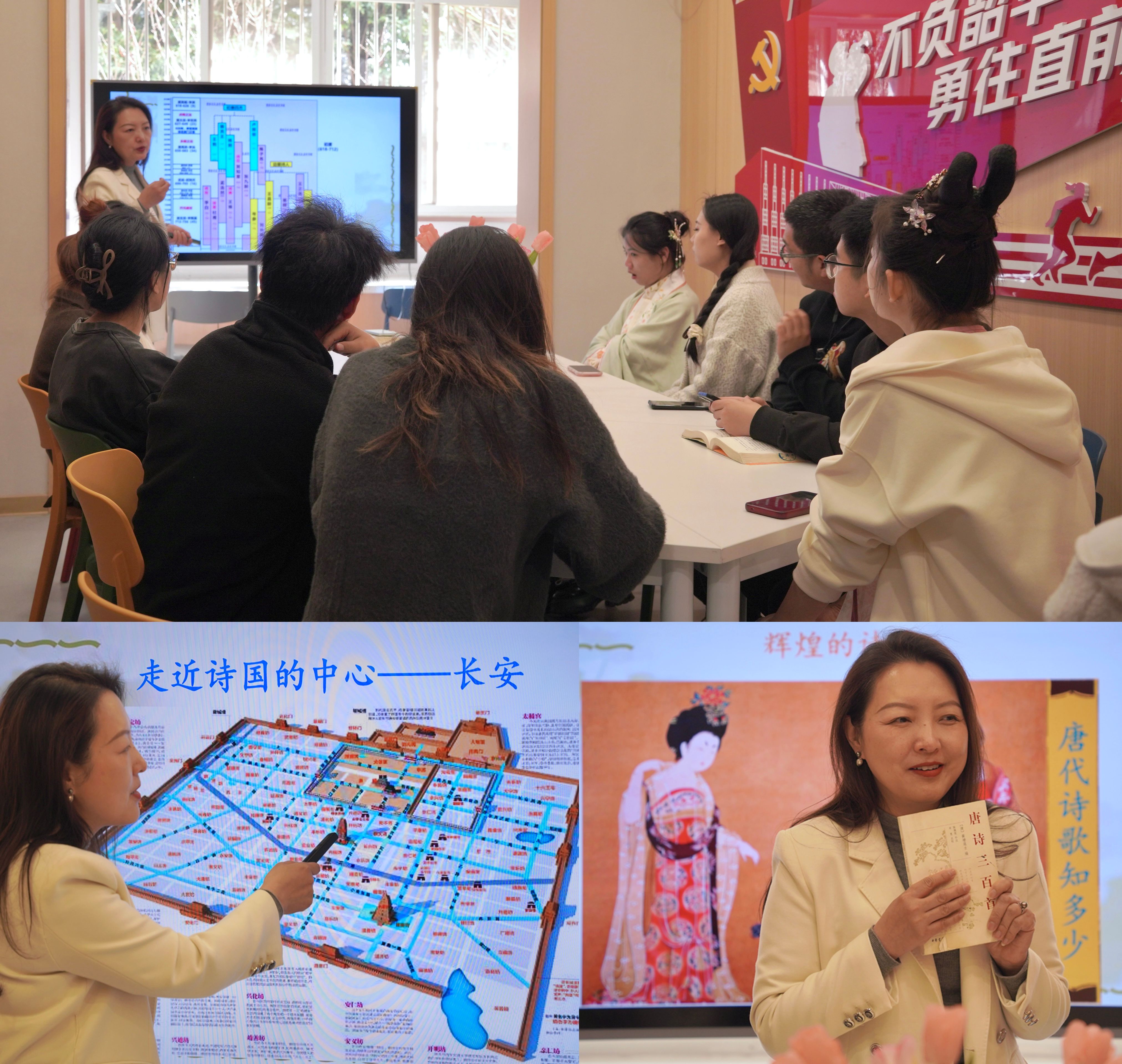 古诗词蕴含着丰富的历史信息、哲学思想和审美情趣。学习和弘扬诗词文化,可以增强民族自豪感和文化自信,丰富精神世界,提升个人文化素养和审美能力。博雅学生社区学业导师张静在带领同学们走进“唐诗与长安”的世界。