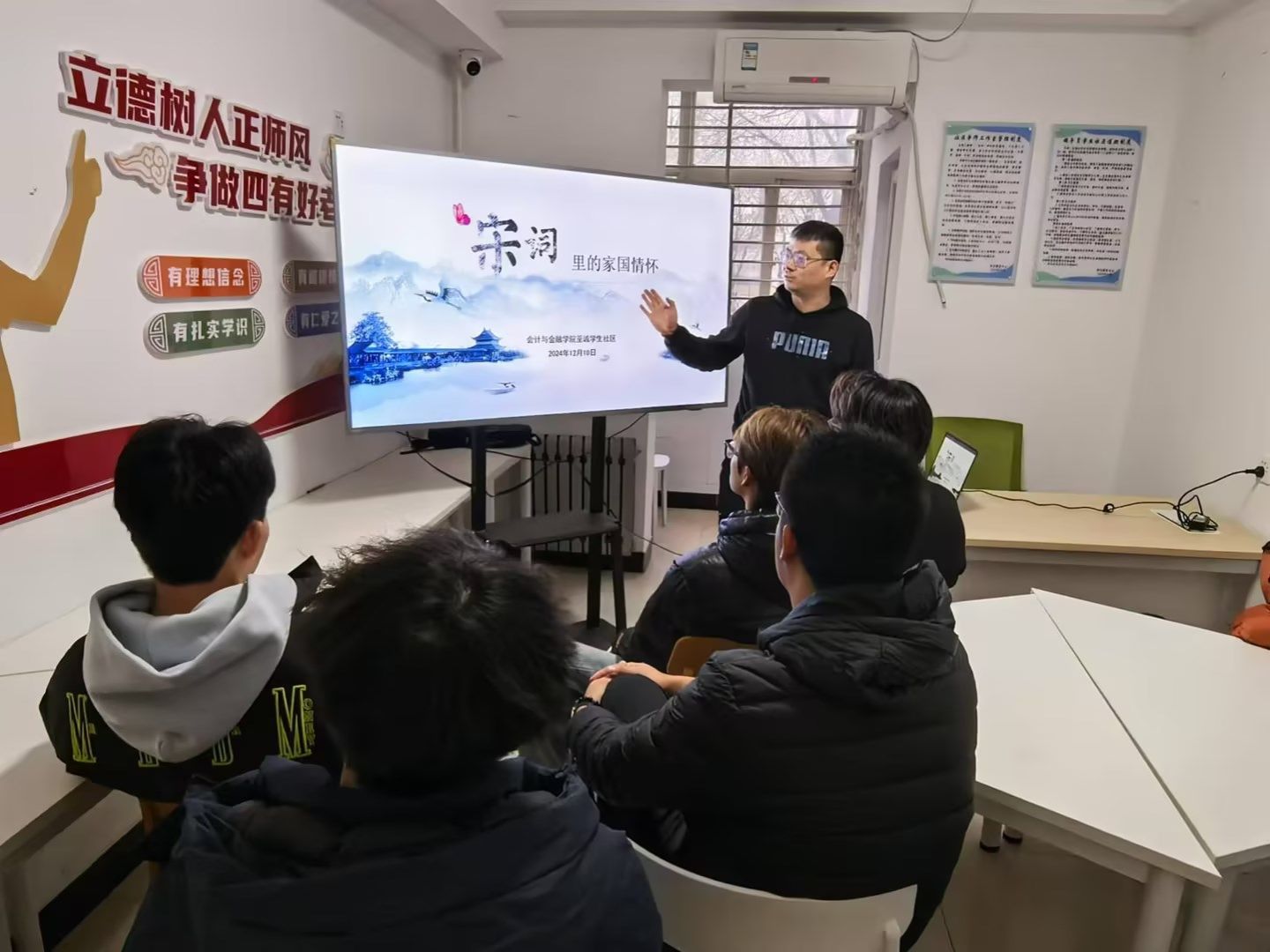 宋词不仅是古代文人墨客抒发个人情感、描绘社会风貌的重要载体,更是中华民族家国情怀的重要体现。至诚学生社区德育导师乔安系统讲解了宋词的创作背景、艺术手法以及情感表达。