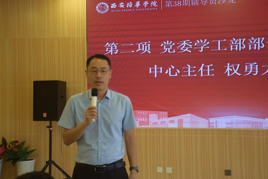 随后,党委学工部部长兼学生服务中心主任权勇太发表了讲话。他指出,沙龙活动已持续举办至第十个年头,大家应当珍惜这一平台。他还分享了学校在劳动教育方面的探索与成果,并鼓励辅导员们积极投身劳动教育实践,为学生的全面发展贡献力量。