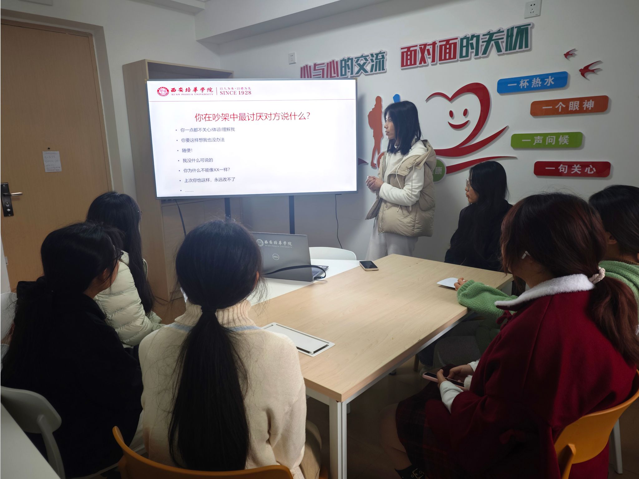 为进一步落实“三全育人”理念,精准对接女大学生成长需求。近日,西安培华学院女子学院组织教师团队深入各学生社区,以“面对面交流、心贴心育人”的方式,围绕恋爱成长与沟通、社会性别与健康、女性职场挑战及国家安全教育与非暴力沟通四大主题开展系列育人活动,为女大学生的成长成才注入温暖力量。