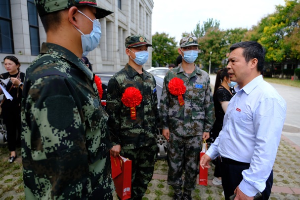 各学院领导为入伍新兵送上入伍纪念品