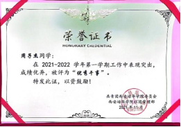 12.2023年6月,在2022年度西安培华学院“一站式”学生社区建设工作中被评为“抗疫先进个人”称号